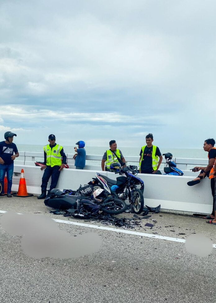 Kemalangan di atas Jambatan kedua melibatkan dua buah motosikal dan sebuah pacuan 4×4.