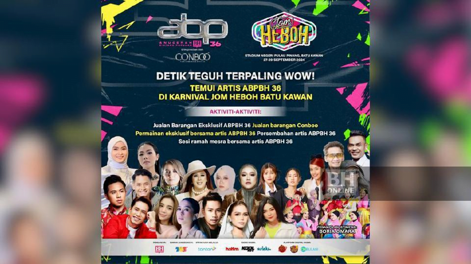 KUALA LUMPUR: Kehangatan Anugerah Bintang Popular Berita Harian (ABPBH) Ke-36 yang menghampiri kemuncaknya, makin dirasai apabila calon Top 20 menyertai Karnival Jom Heboh (KJH) Pulau Pinang di Stadium Negeri Pulau Pinang, Batu Kawan, mulai esok hingga Ahad.