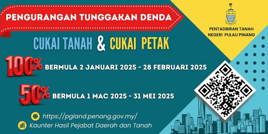 (ii) PENGURANGAN TUNGGAKAN DENDA SEBANYAK 50 PERATUS BAGI PEMBAYARAN CUKAI TANAH DAN CUKAI PETAK MULAI 1 MAC SEHINGGA 31 MEI 2025