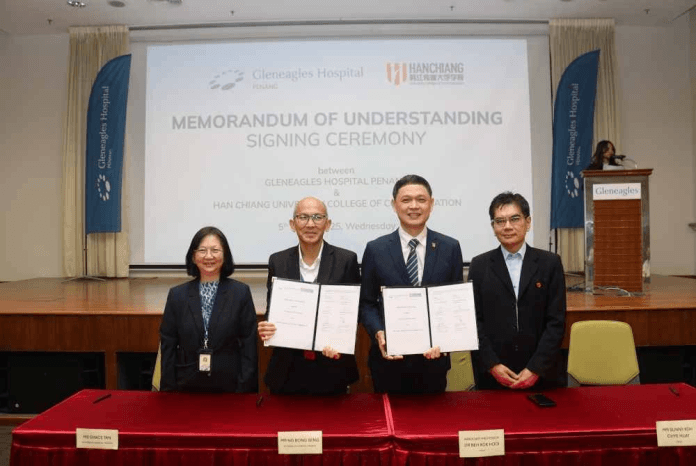 GEORGE TOWN- Hospital Gleneagles Pulau Pinang menjalinkan kerjasama strategik dengan Han Chiang University College of Communication (HCUC) menerusi pemeteraian memorandum persefahaman (MoU).