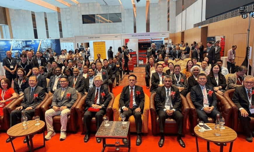 Hadir sama, Pengasas dan Ketua Pegawai Eksekutif Kumpulan NRG Exhibitions dan Fireworks Trade Media Group, Kenny Yong; Penasihat EMAX dan PMAX, Philip Vincent; Timbalan Ketua Pengarah Hal Ehwal Asia, Kementerian Perdagangan Republik Rakyat China, Yin Gang; perdagangan.