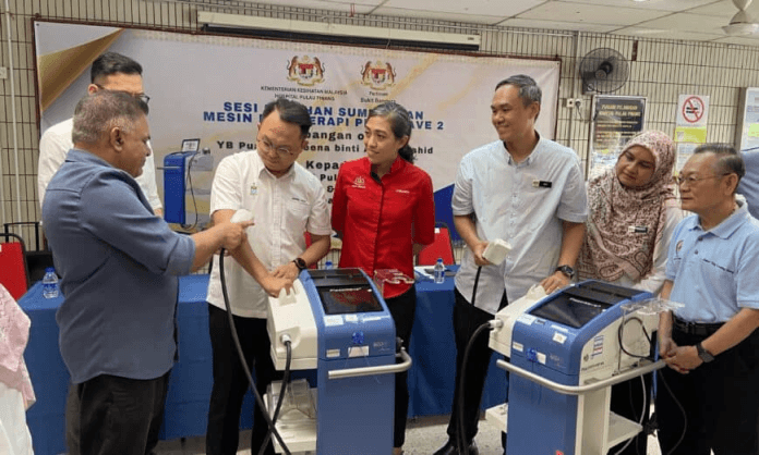 PULAU TIKUS – Ahli Parlimen Bukit Bendera, Syerleena Abdul Rashid menyumbangkan dua unit mesin fisioterapi kepada Jabatan Kesihatan Negeri Pulau Pinang (JKNPP) dengan nilai keseluruhan RM160,000.
